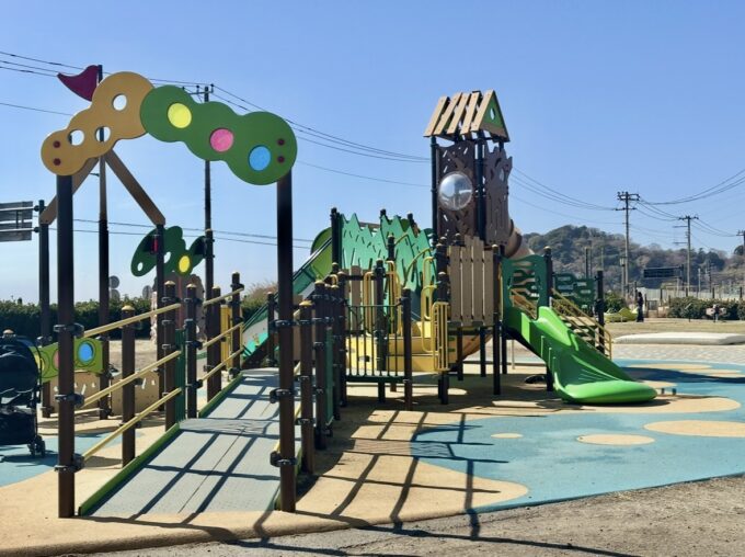 車椅子でも楽しめる「みかんポリン」や、スロープ付きの複合遊具など、可愛らしいポップなカラー目を引きます。