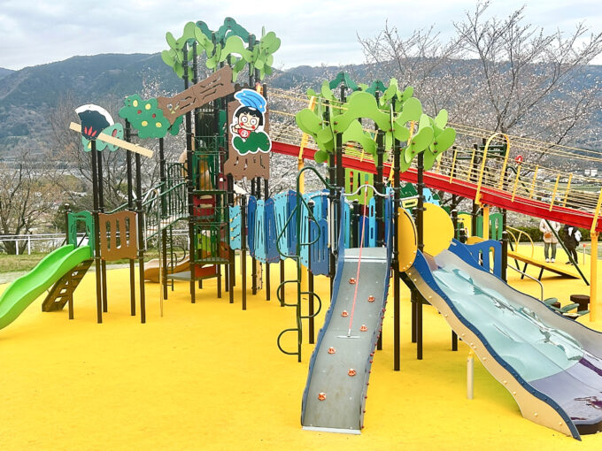 2025年3月にリニューアルされた「遊びの広場」には、名産でもある みかんをモチーフ にしたインクルーシブ遊具が登場。