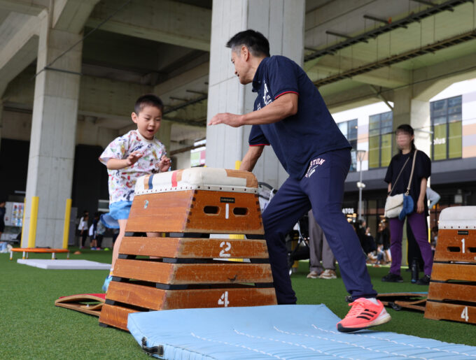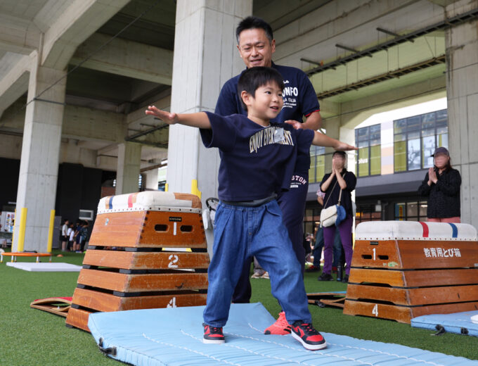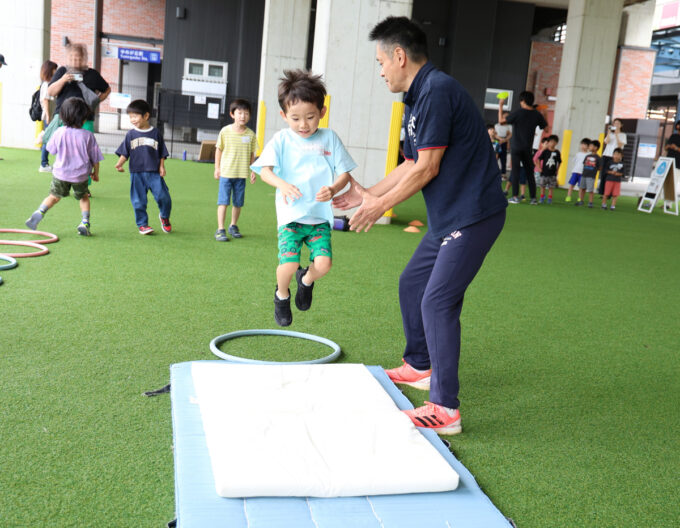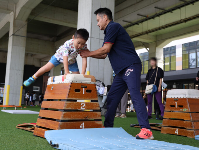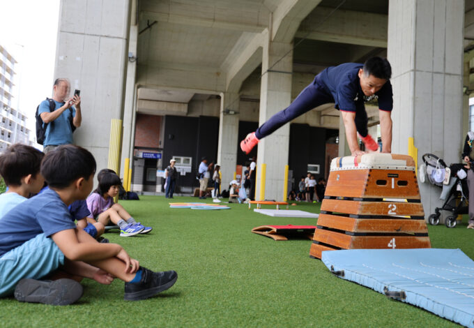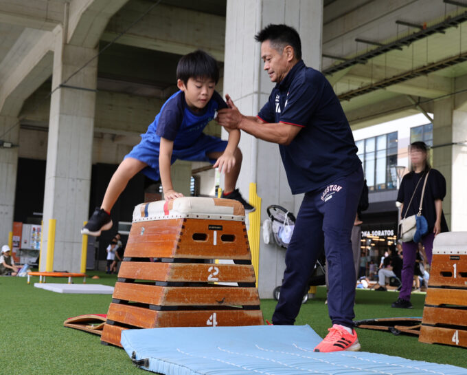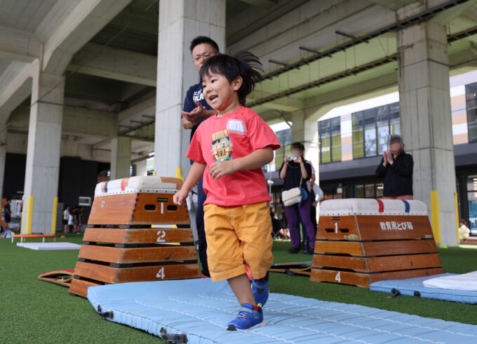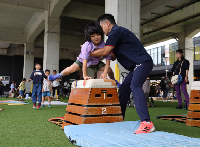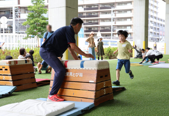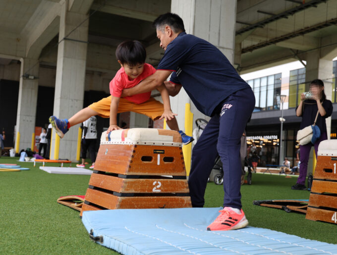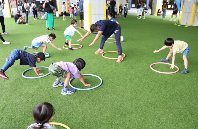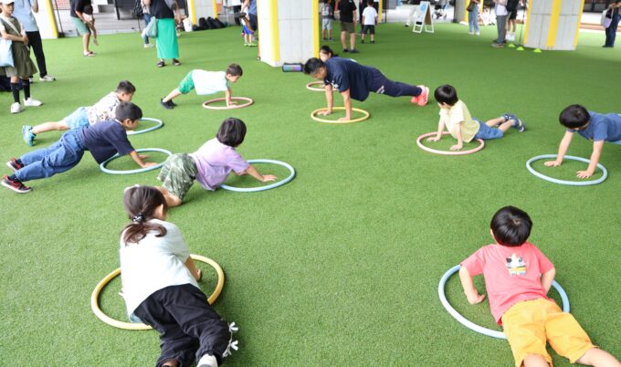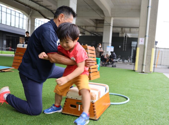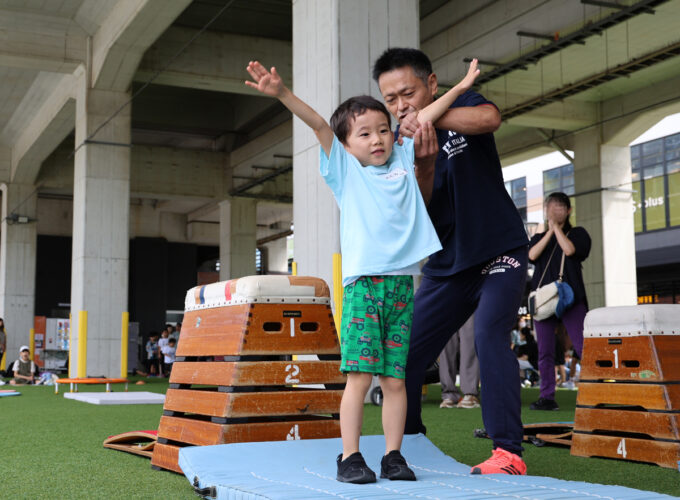 「あそびい横浜」がプロデュースする1日体験教室「よこはま こどもカレッジ」の「跳び箱教室」が、相鉄いずみ野線「ゆめが丘駅」駅前の高架下広場で開催されました。