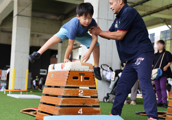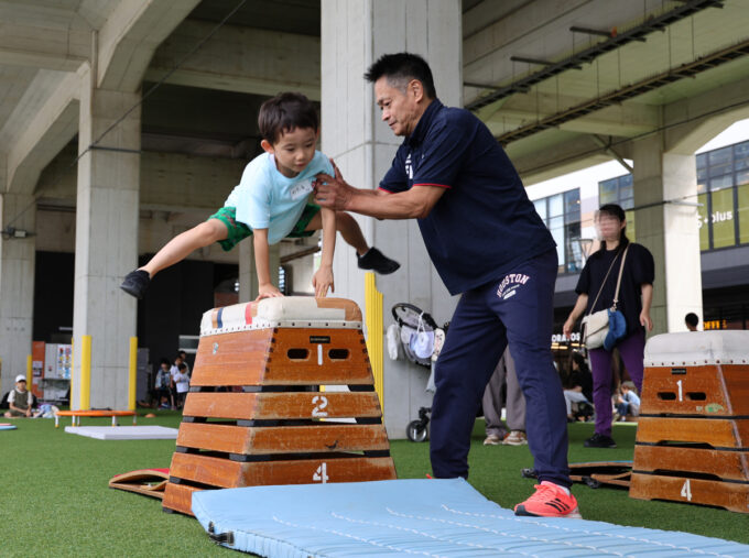 跳び箱教室、相鉄線「ゆめが丘駅」駅前で開催!5段にチャレンジ!