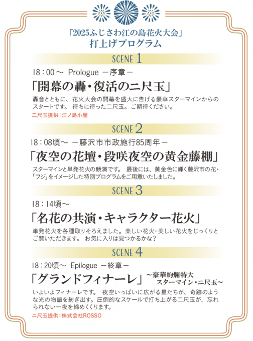 2025年10月18日(土)、湘南の秋の風物詩「ふじさわ江の島花火大会」が開催されます!!