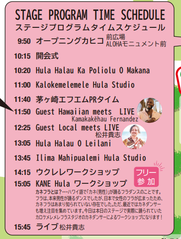 市内のハラウによるハイレベルなフラと、ウクレレの生演奏によるアイランドセッションが楽しめますよ♪ハワイにいるような気分が味わえそうです!