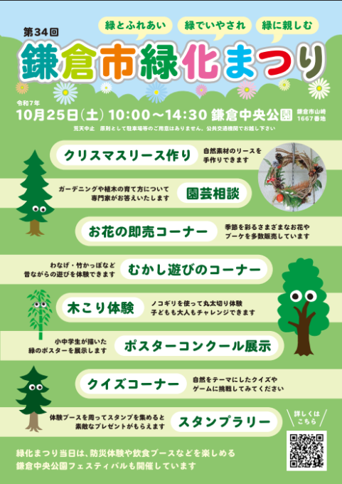 2025年10月25日(土)@鎌倉中央公園で「鎌倉中央公園フェスティバル」と「鎌倉市緑化まつり」が同時開催されますよ!