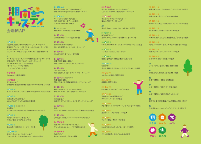 子ども達を育み、大人も一緒に楽しめる!「まなぶ」「あそぶ」「つくる」「たべる」「であう」の5つのカテゴリーの様々な催しが集まり、湘南を一年で一番楽しむ一日に♪