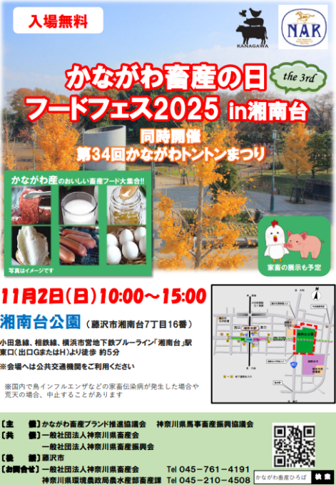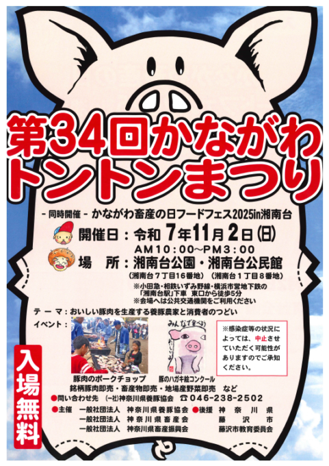 2025年11月2日(日)@湘南台公園で、「第34回かながわトントンまつり」と「かながわ畜産の日フードフェス2025 in湘南台」が同時開催されますよ!