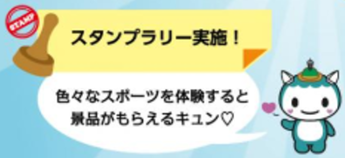 各会場でスタンプラリーが行われます。種目を体験してスタンプを集めると景品と交換してくれますよ。たくさん体験して、景品もいっぱいゲットしよう!