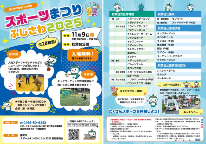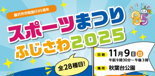 いよいよ11月、秋も本番ですね!スポーツの秋にぴったりのイベント「スポーツまつりふじさわ2025」が秋葉台公園で開催されますよ。