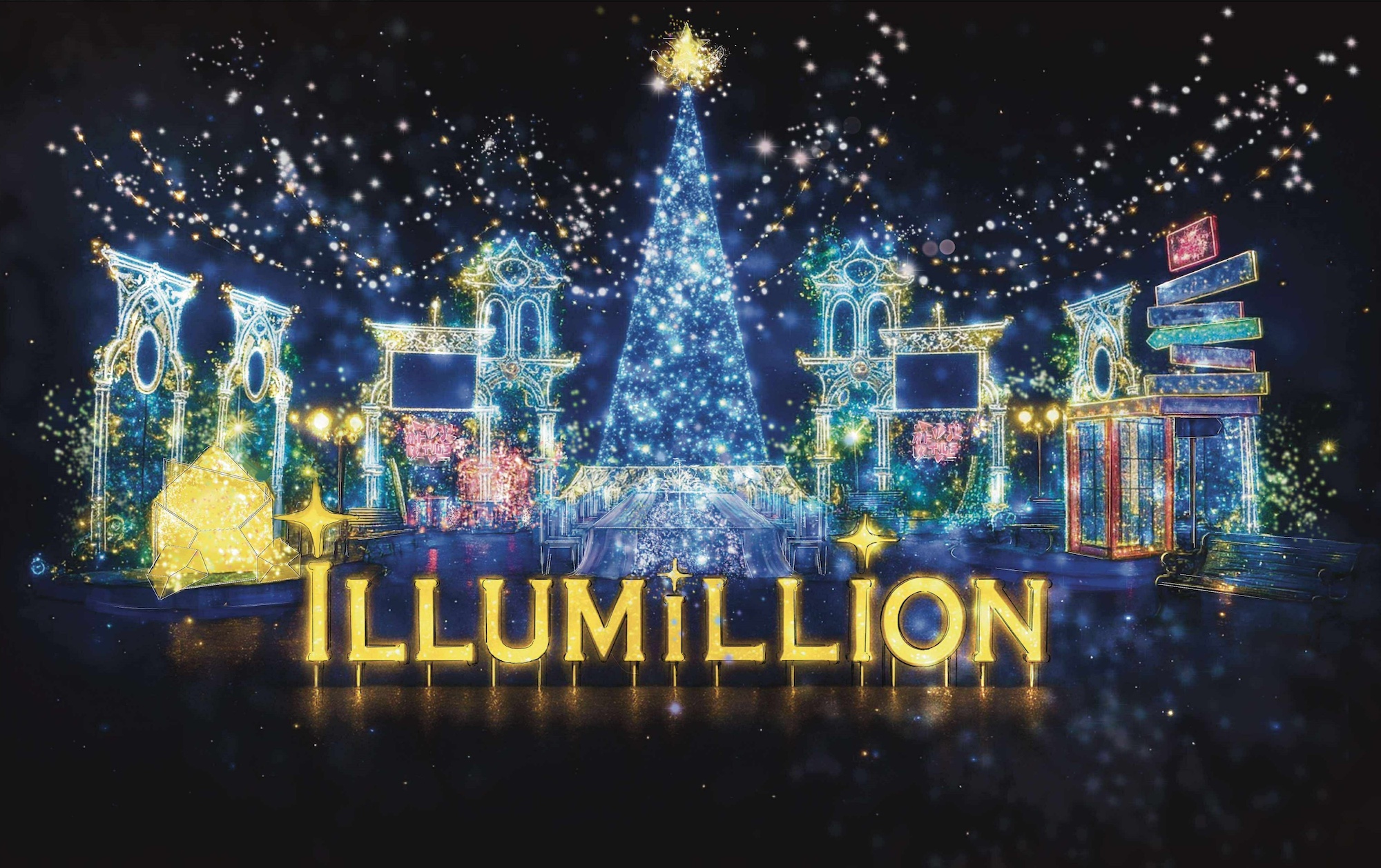高さ15mのシンボルツリーを中心に、街角の電話ボックスやプレゼントボックス、晩餐会をイメージしたロングテーブル&チェア、巨大レター型オブジェなどまるでミュージックビデオのワンシーンに入り込んだかのような空間が広がるそうです。