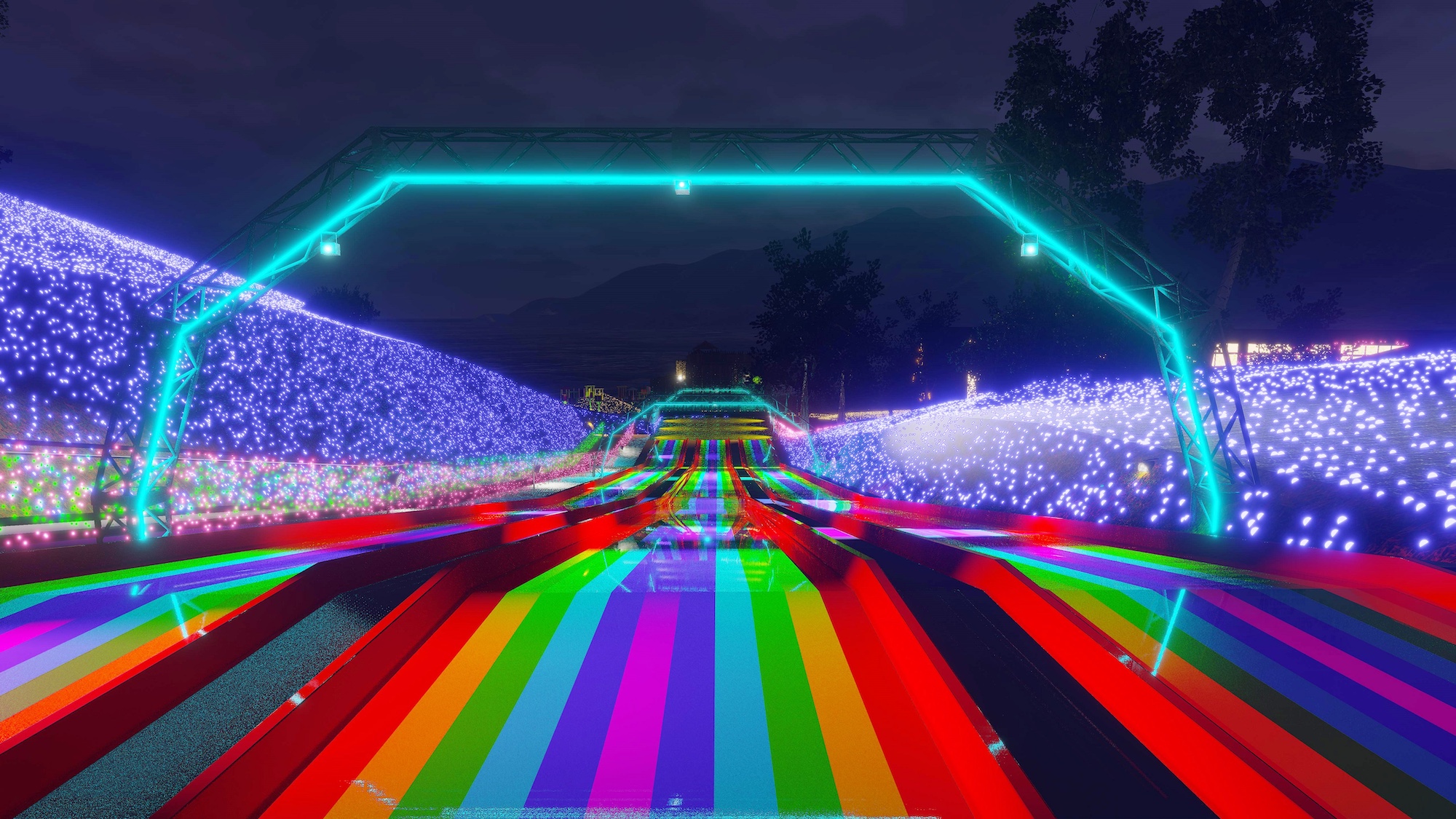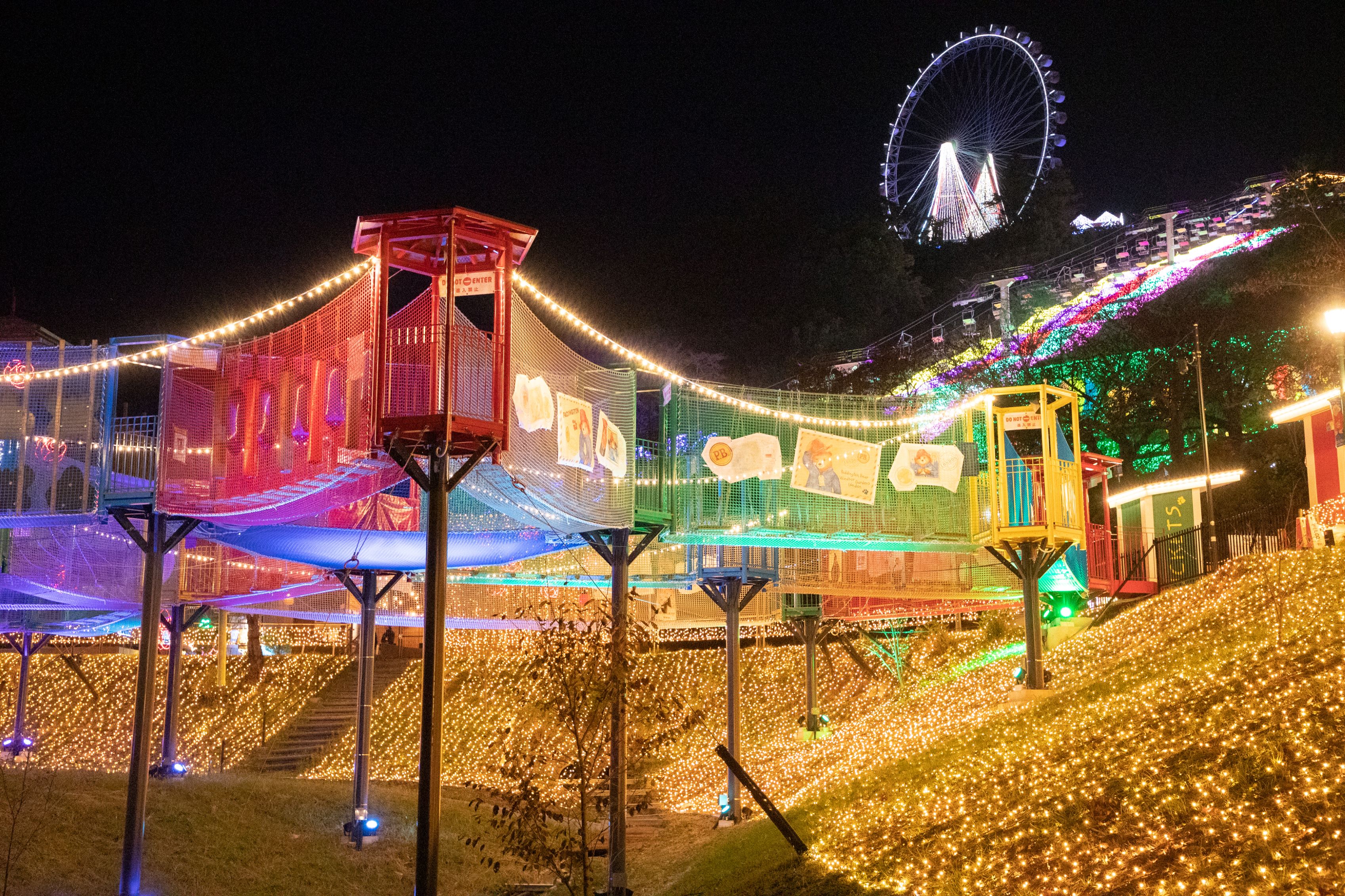 他にも虹色の光に包まれながら空中散歩を楽しめる「虹のリフト」やカラフルにライトアップする「光の空中アスレチック」、など、11のナイトアトラクションで体験しながらイルミネーションを満喫できます。
