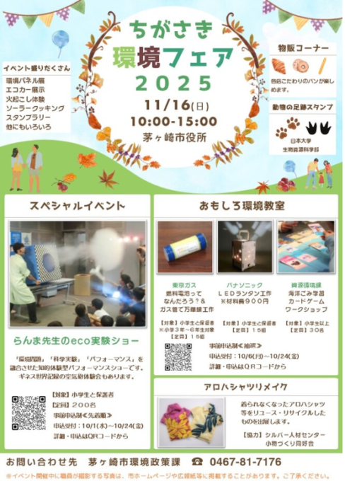 近くの茅ヶ崎市役所では「ちがさき環境フェア2025」が開催されます。