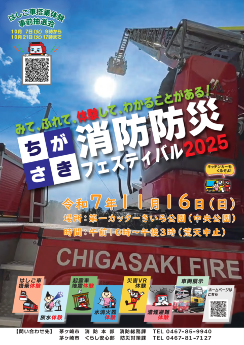 第一カッターきいろ公園(中央公園)で「ちがさき消防防災フェスティバル2025」が開催され、
