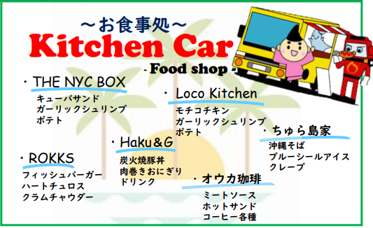 いろいろなジャンルのキッチンカーも登場!! 腹ごしらえして、ゆっくりイベントを楽しめますね。広い公園の芝生が気持ちいい!
