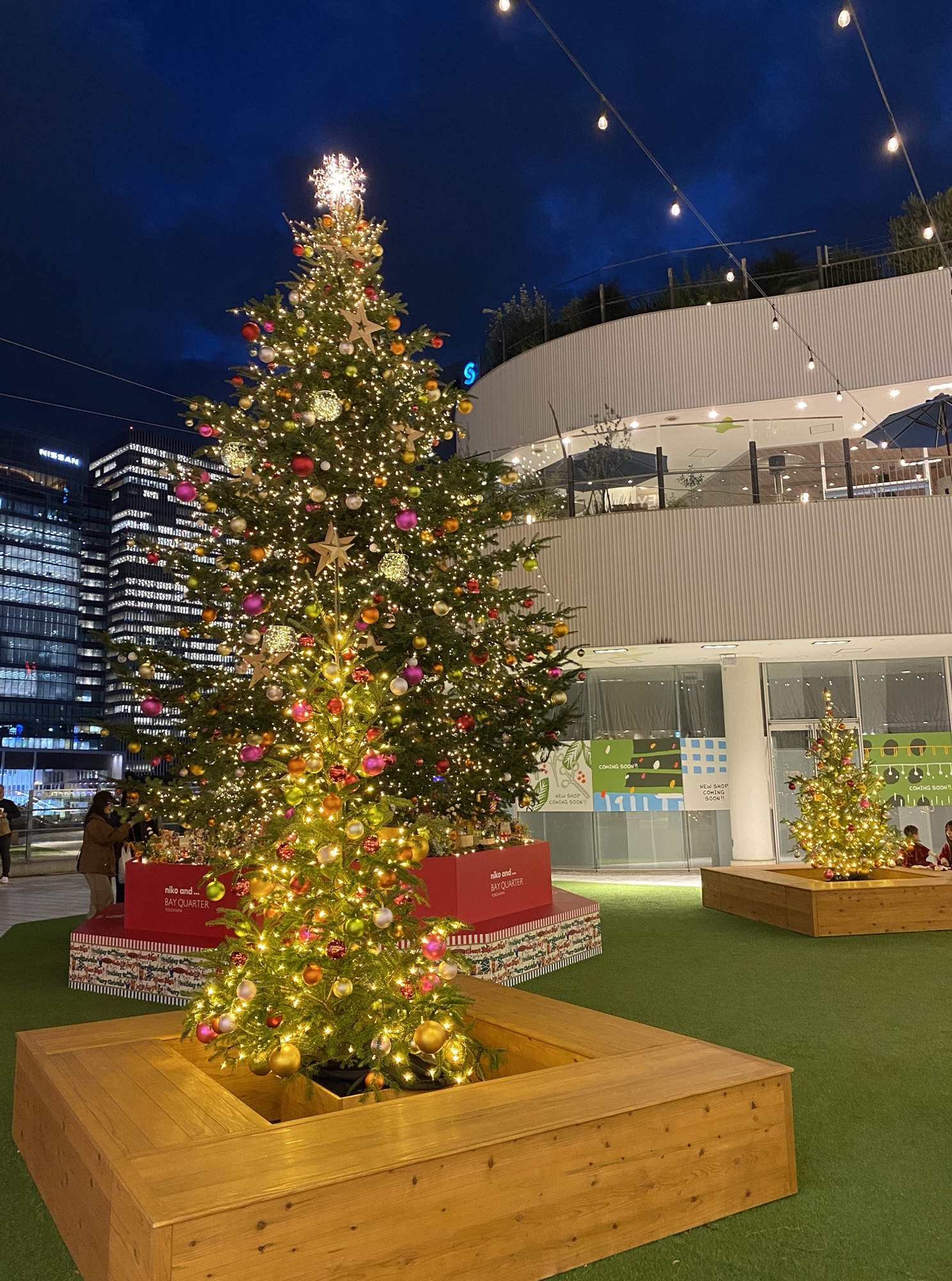 1)横浜ベイクォーターには8メートルのモミの木と10本のミニツリー