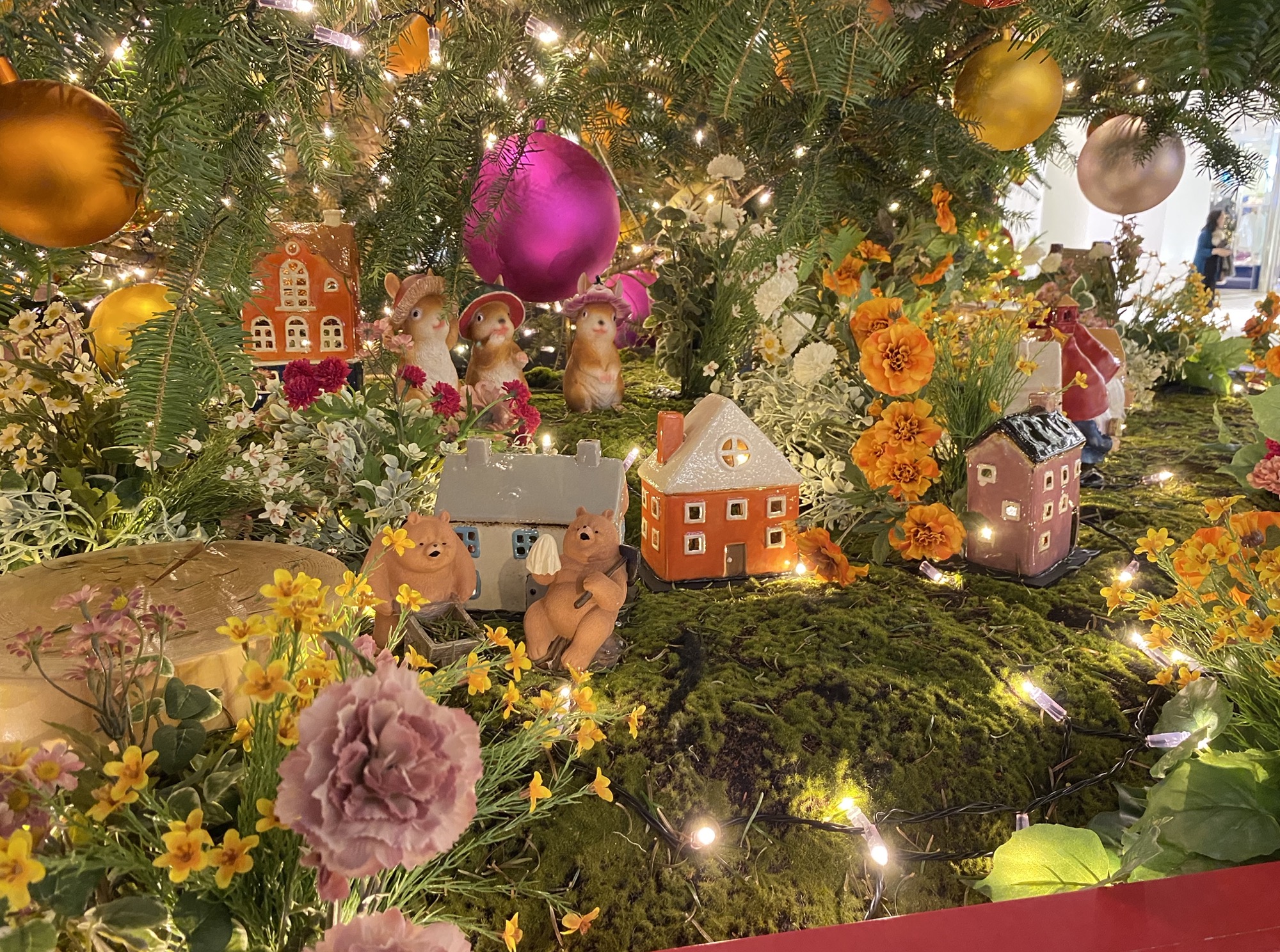 周りには10本のミニツリーも装飾されていて、クリスマスの森を演出しています。