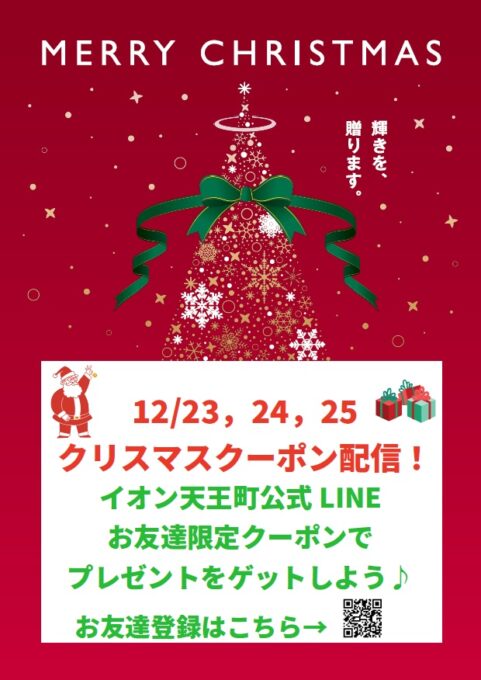 LINEお友達限定!クリスマスクーポン配信! 12月23日(火)~25日(木)