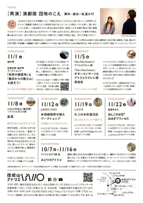 ジョイナステラス二俣川が、館内の共有スペースを活用し、地域で活動する個人や団体と一緒に地域を盛り上げるコミュニティ。毎月さまざまなワークショップが開催されています。