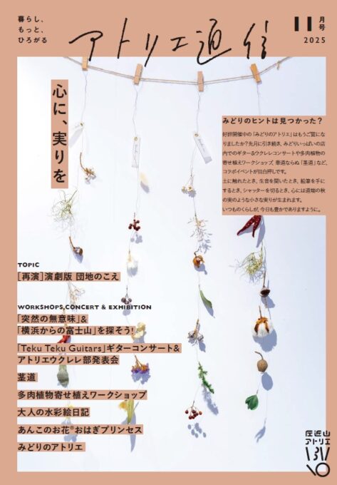 アトリエで開催されるイベントが掲載されているアトリエ通信。おしゃれなカフェで手仕事を楽しもう!