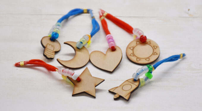 紫外線で色が変わるビーズや蓄光ビーズ、科学館オリジナルのチャームを用い、ストラップを作ります。
