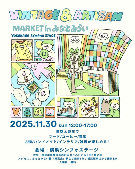 「下北沢フリーマーケット」や「Vintage & Artisan Market in Shibuya Kitaya Park」等、東京や神奈川を中心にマーケットイベントを企画・運営する株式会社POZOは、2025年11月30日(日)に、みなとみらいの複合施設 横浜シンフォステージにて、「Vintage & Artisan Market in みなとみらい」を開催します。