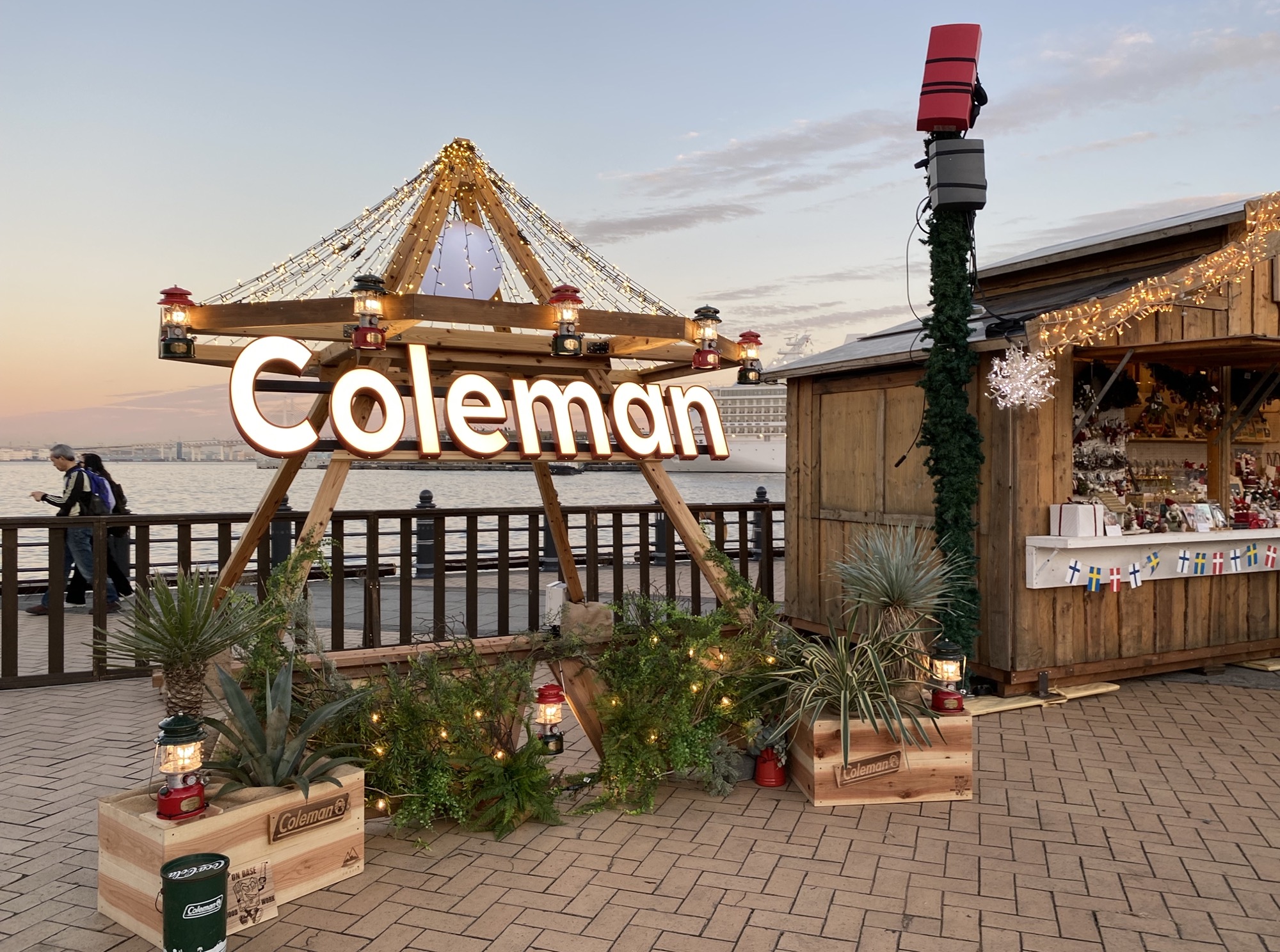 コールマンとのコラボでランタンの輝くベンチスペースも