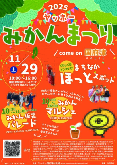 地元の農家さんがつくった美味しいみかんや、みかんのパンやお菓子・ジュース、可愛いみかんグッズなどを海辺のマルシェで販売。そして、歴史的建物(国登録等)のカフェやギャラリーなどこだわりの店が光る国府津を練り歩く「みかんパレード」も開催します!
