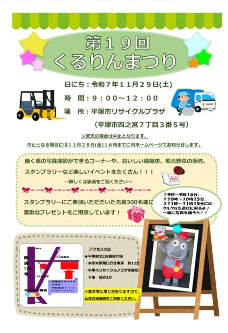 ![【はやま環境フェス】ピカピカの新施設クリーンセンターの見学ツアー、重機やパッカー車の乗車体験&収集体験!リユース市、素敵な景品が当たるスタンプラリーなど、お楽しみと学びがいっぱい!ご当地キャラクターもやって来ます♪[2025年11月29日(土):葉山町]](https://asobii.net/asobii/wp-content/uploads/2025/11/35eefcfee8cb95faa272bd94b1b3d443-114x114.jpg)
