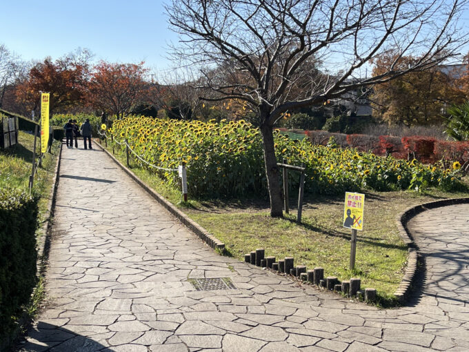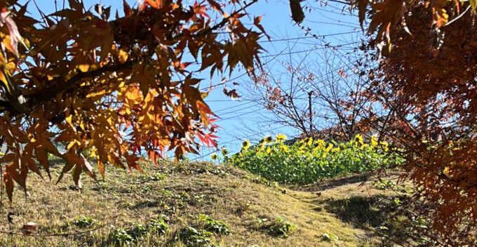 冬はヒマワリと一緒に紅葉が楽しめる、珍しい場所でもあるのです。