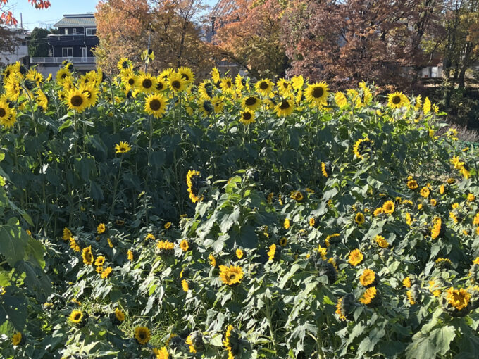 冬のヒマワリを観に「座間市かにが沢公園」へ行ってきました!12月にヒマワリと紅葉が一緒に見られる!こども広場の遊具も大充実の駅近の広々とした公園!寒さに負けず美しく咲くヒマワリを見て、元気をもらいました!