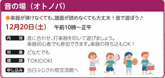 楽器が弾けなくても譜面が読めなくても大丈夫!音で遊ぼう。 ※予約不要