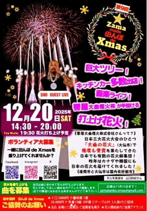 ライブパフォーマンスやキッチンカーなど盛りだくさん!!さらに座間市と友好都市協定を締結している秋田県大仙市大曲の花火職人さんによる打ち上げ花火も予定しています!