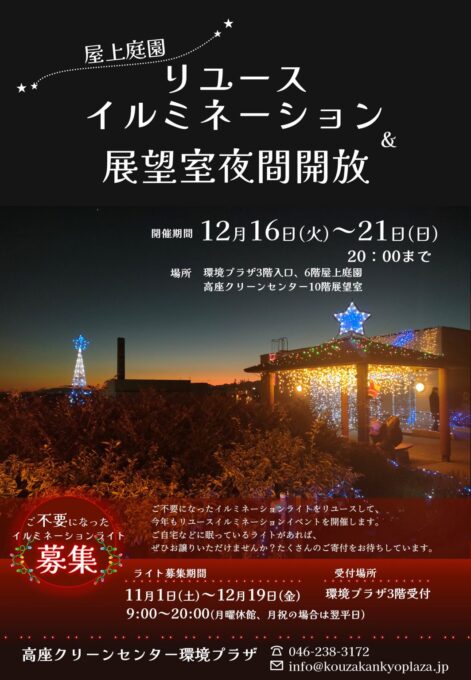 【海老名市】展望室夜間開放&屋上庭園リユースイルミネーション