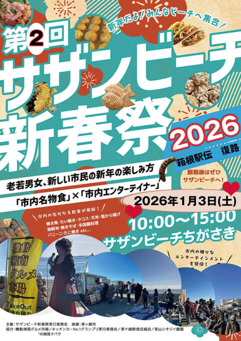 ![第12回 新春こども凧揚げ大会:茅ケ崎の新春の風物詩が2026年も開催!手作り凧の配布、むかし遊び体験、甘酒ふるまい…家族みんなで楽しく過ごし、縁起の良い一年を願いましょう[2026年1月2日:サザンビーチちがさき]](https://asobii.net/asobii/wp-content/uploads/2025/12/3a519714b5ed2df910c938035362fcee-114x114.jpg)
