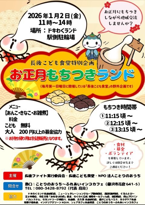 正月餅つきランド(長後こども食堂野外企画)