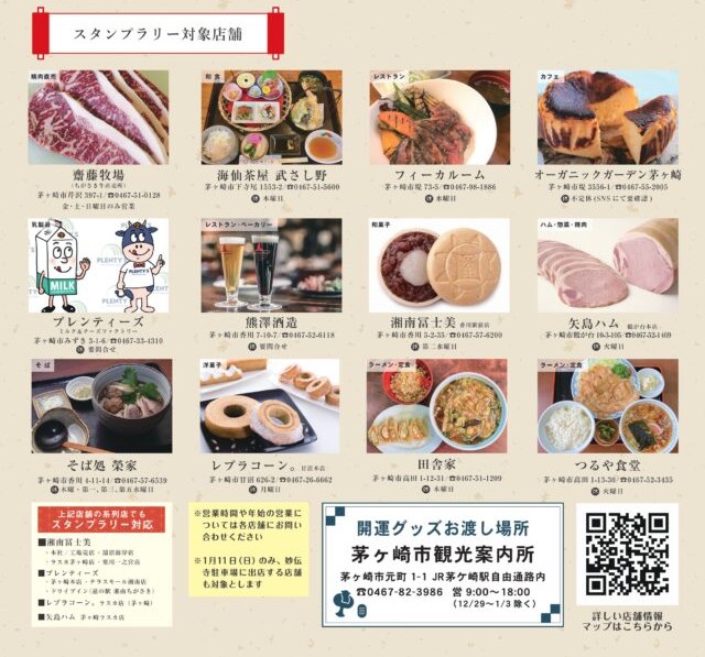 近隣店舗でご当地グルメを味わって♪どのお店も茅ヶ崎を代表する名店がズラリ!※各店舗の詳細は、茅ケ崎市観光協会公式HPにてご確認ください。