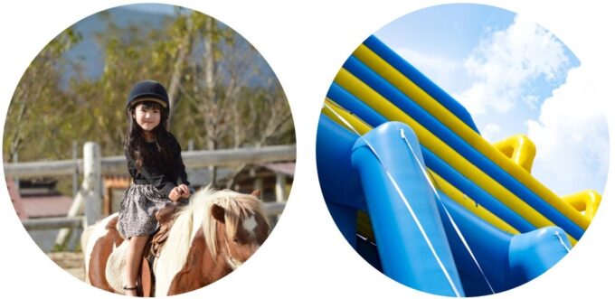ポニー乗馬体験やふわふわ遊具のコーナーも