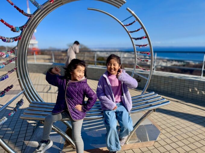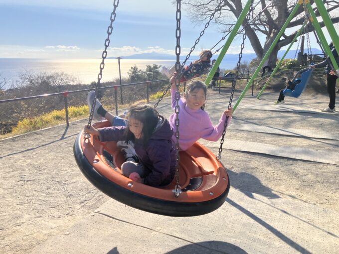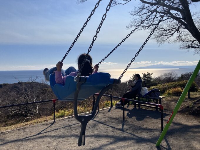 高麗山公園(湘南平):海に向かってブランコ、展望台から360°大パノラマ!「かながわの景勝50選」の絶景×最新インクルーシブ遊具で楽しむプチ贅沢な親子時間♪[平塚市]