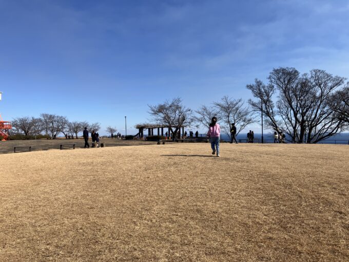 展望台に上らなくても十分景色がいいので、レジャーシートを広げてお花見できる季節が待ち遠しい。