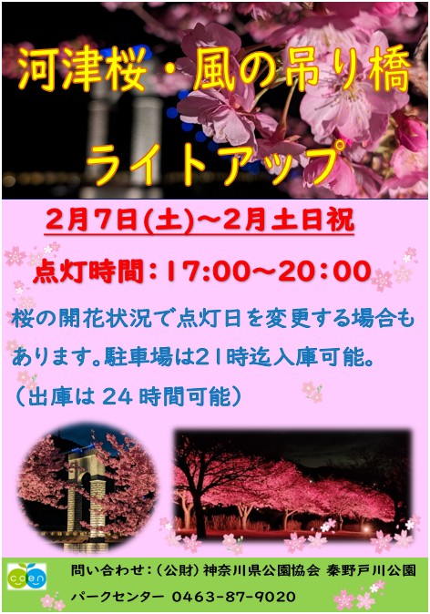 2月の土日祝(河津桜)、2月7日〜3月1日まで毎日(風の吊り橋) 17:00~20:00