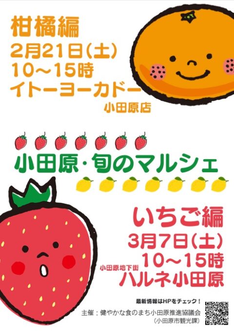 小田原の食の豊かさを市民及び観光客に知ってもらう機会とするため、「小田原・旬のマルシェ」を開催。2月は柑橘、3月はいちごがテーマです。