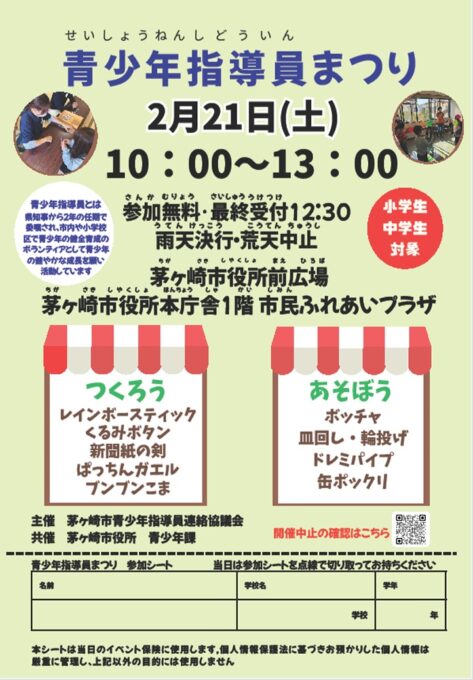 工作や様々な遊びを体験できるブースがあります! ※小中学生対象 ※参加無料 ※参加シート持参