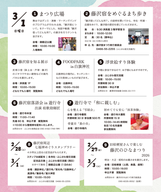 春のおでかけにぴったりのこのイベント。藤沢宿の歴史を感じながら家族で楽しいひと時をお過ごしください。