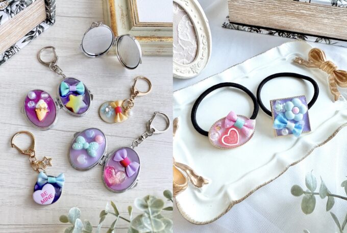 カラフルレジンで作る! リボンとビーズのキーホルダーやアクセサリー