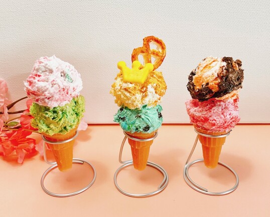 春色ミニジェラート作りに挑戦♪春色2フレーバーの組合せをわくわく考えて自分の食べたいジェラートを楽しくネリネリ♪表現しましょう。