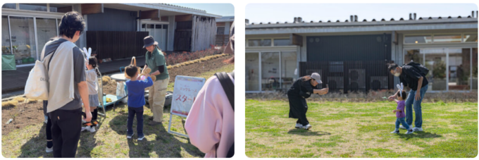 うさぎをはじめモルモットやヒヨコたちとふれあえます。抱っこをして記念写真を撮ろう!