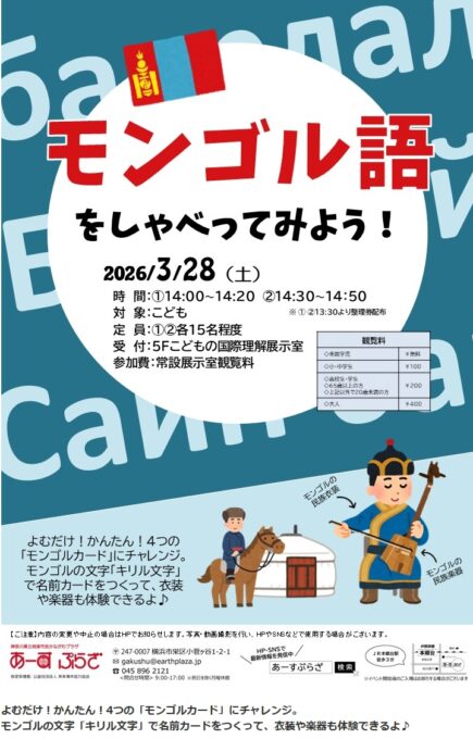 よむだけ!かんたん!4つの「モンゴルカード」にチャレンジ。モンゴルの文字「キリル文字」で名前カードをつくって、衣装や楽器も体験できるよ♪