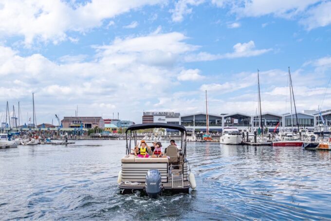 マリーナ港内をぐるっと海上散歩 小型ボートで海ゴミ拾い体験♪