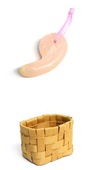 「れきし工房」の中で人気の「まがたま(かっ石)」と「あじろ編み(小物入れ)」です。 楽しくモノづくり、してみませんか?スタッフがサポートいたします。