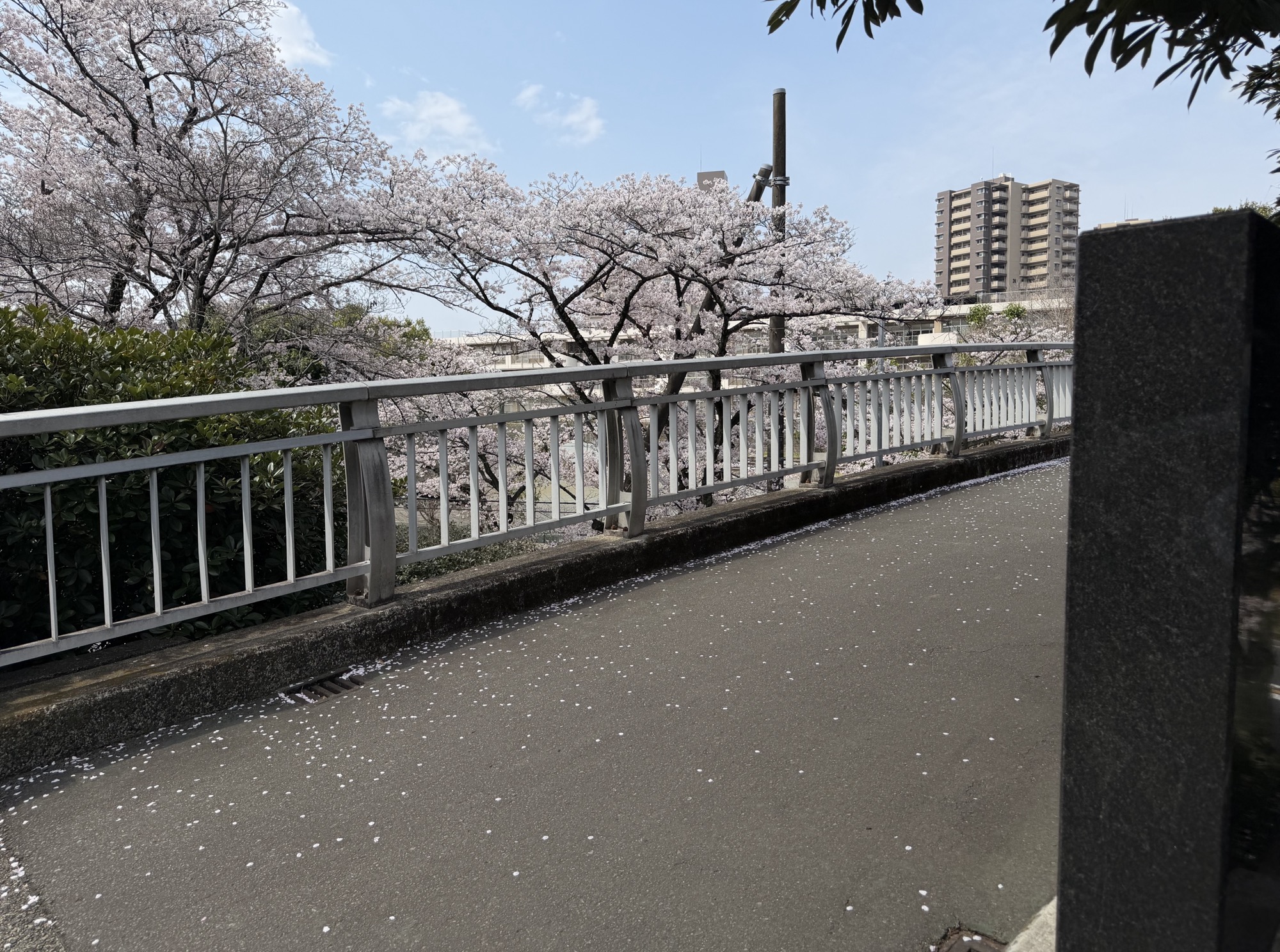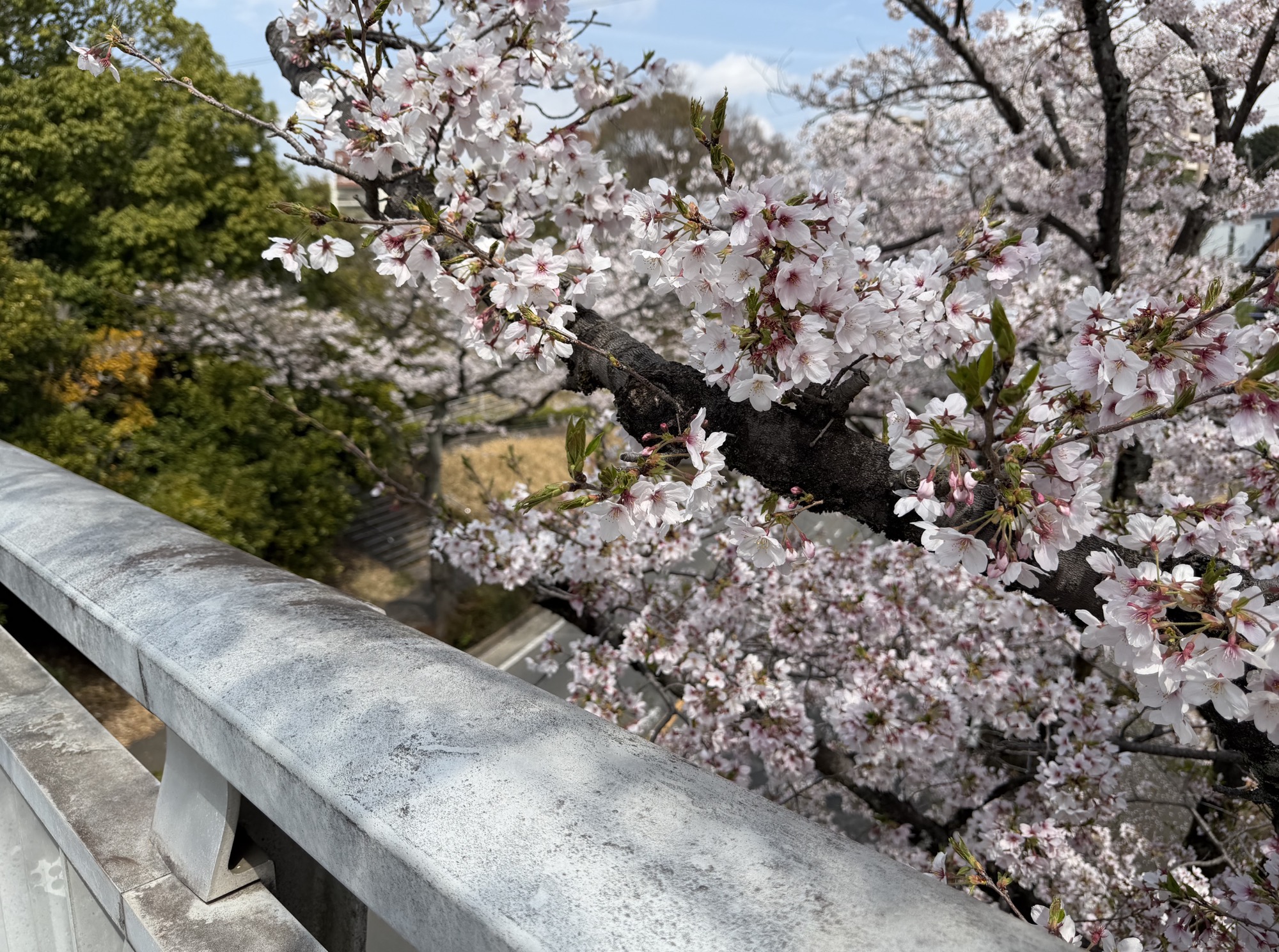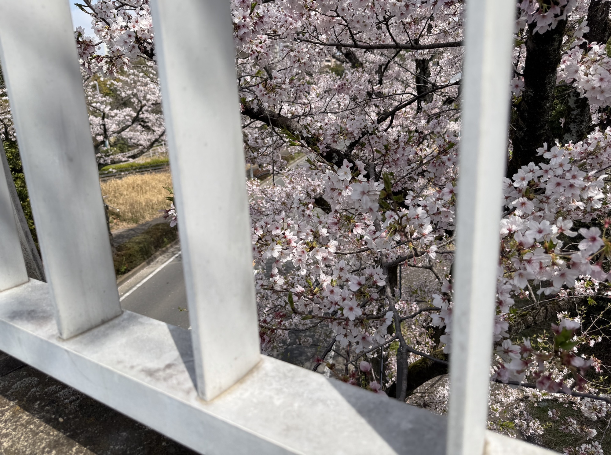 歩道橋からは間近で桜を見ることもできます。写真を撮りたくなります。