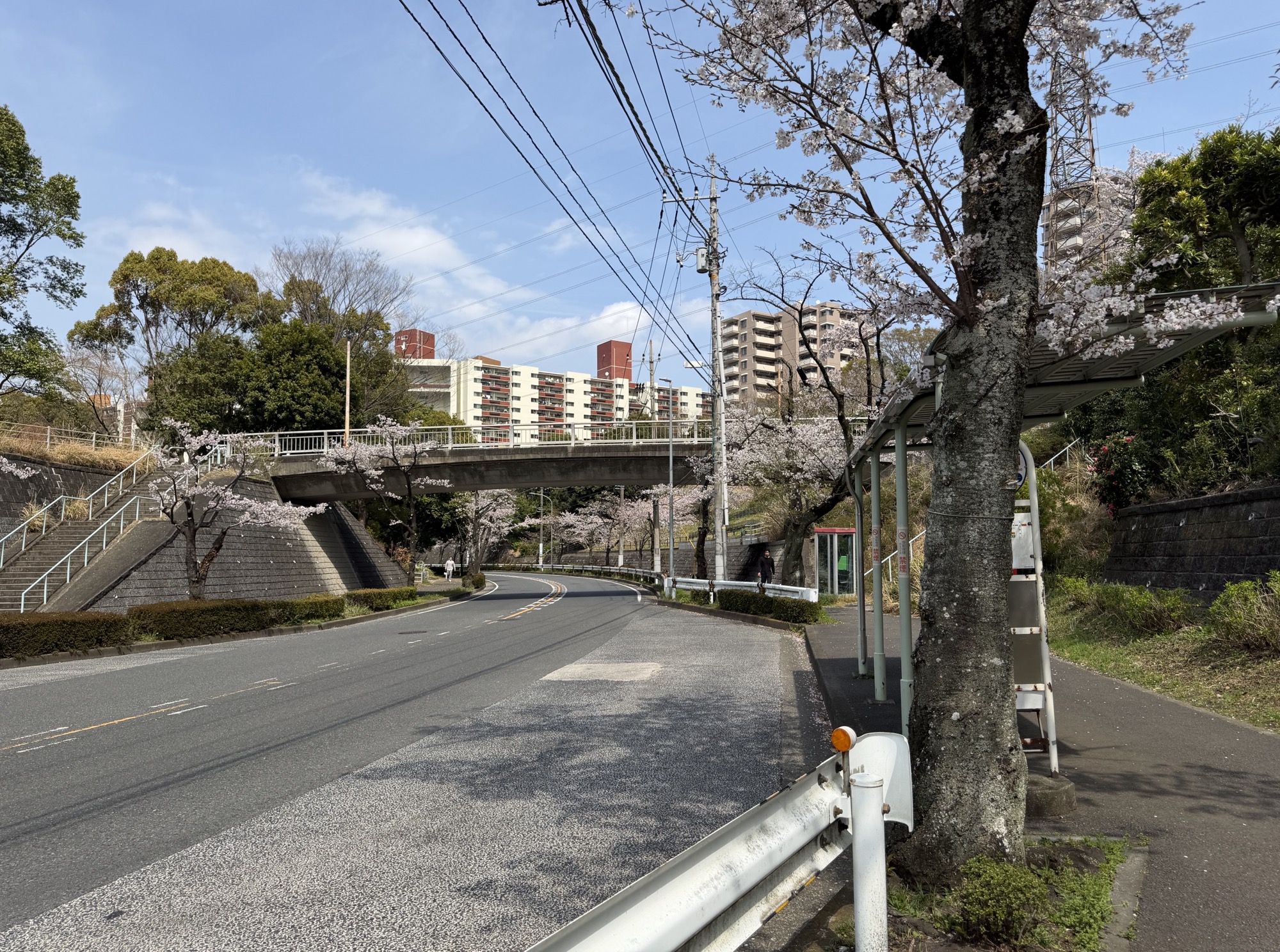 こちらは国道16号線と環状4号線をつなぐ道路で、若葉台団地付近は桜並木が続いています。