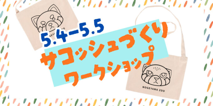 野毛山動物園で大人気のマヌルネコとレッサーパンダの顔をスタンプで押して、世界に一つだけの可愛いサコッシュを作りませんか?ちょっとしたお出掛けにぴったりのサイズです!